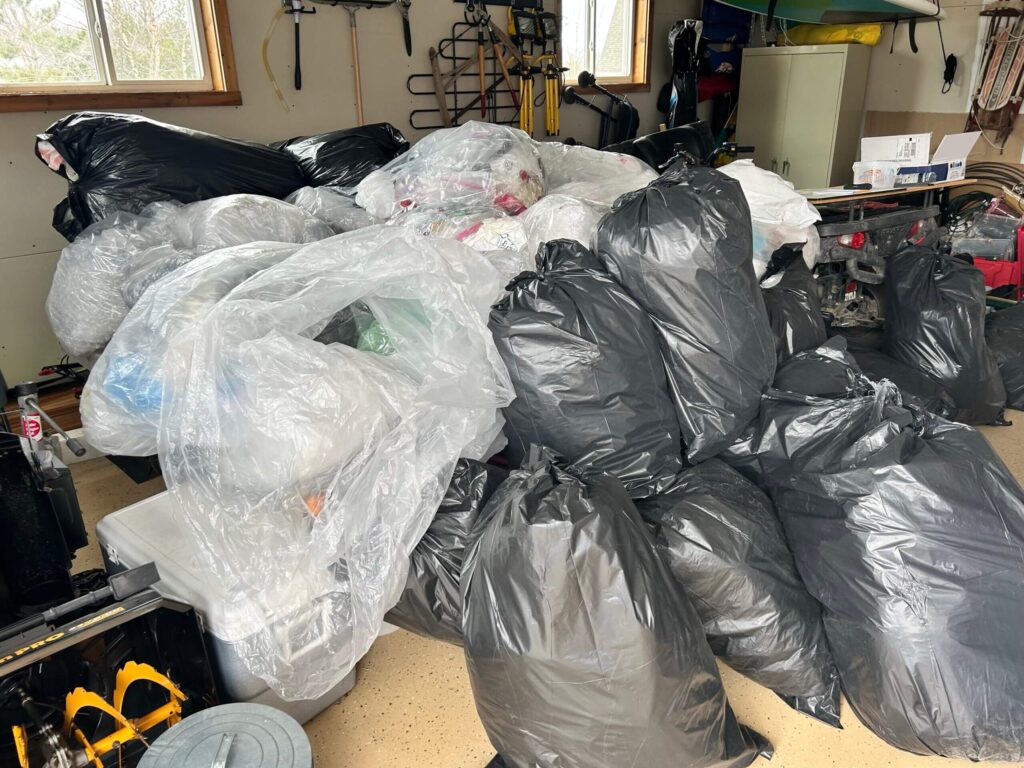 Plastic bags that contain plastic bags. Thousands collected from the community. Thousands that need to be inspected and cleaned, ready to be recycled.