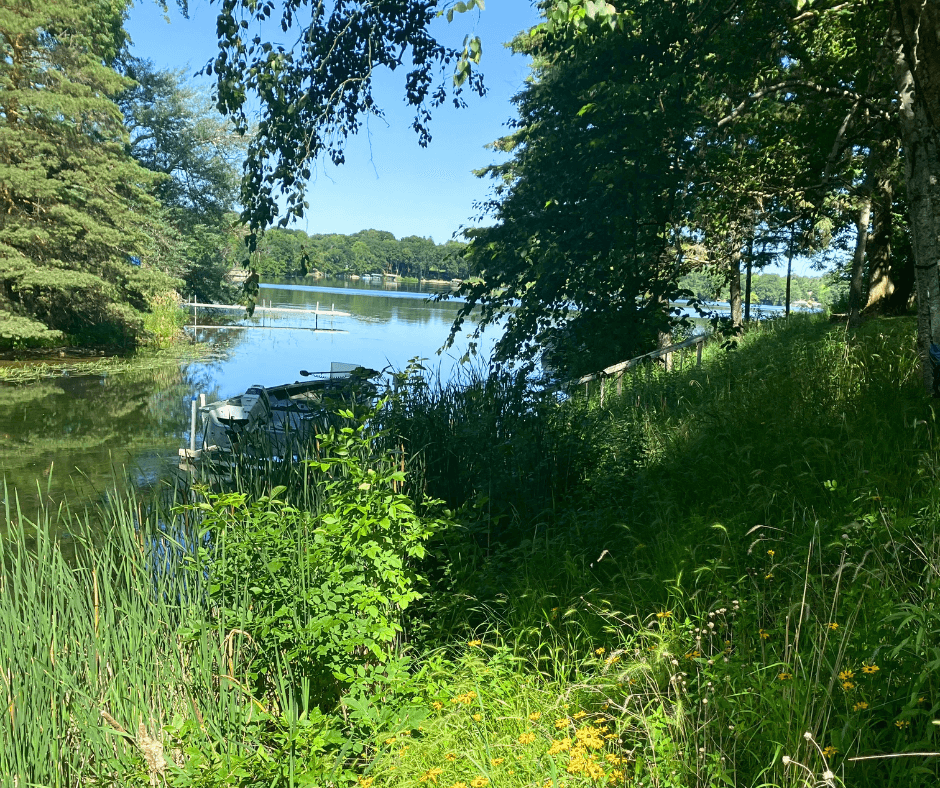 Most people want to protect the lakes they love and live on—but restoring a natural shoreline offers more than just water quality benefits. It adds natural beauty to your property and attracts birds, pollinators, and other wildlife by providing essential habitat. If you’re not a fan of geese on your lawn, natural vegetation can help with that too. Pete explained that buffers make it harder for geese to move between water and lawn, and the taller plants reduce visibility, making geese more cautious because of potential predators.