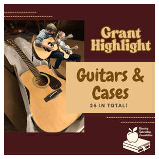 “We have 16 new yamaha guitars. They are beautiful! The 5th and 6th grade students for next year are excited for this opportunity. They will be used along with the remaining guitars from the late 70’s. Thank you to the Hawley Education Foundation Grant!”